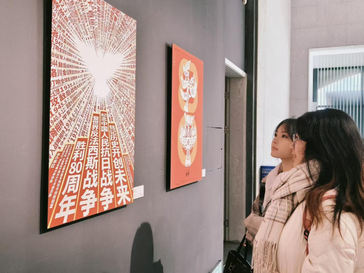 同学们反响热烈,纷纷表示这不仅是一次高质量的艺术观摩,更是一堂沉浸式的思政大课。2025级学生刘福表示,这些海报极具冲击力和感染力,作为设计专业学生,领悟到如何将重大历史主题转化为强有力的视觉叙事,对今后创作思路和责任感培养都有很大启发。2023级党员学生黄诗蕴表示,历史是最好的教科书,站在新时代回望那段峥嵘岁月,更应珍惜当下,将爱国情怀融入专业学习,用设计服务社会、传递正能量。