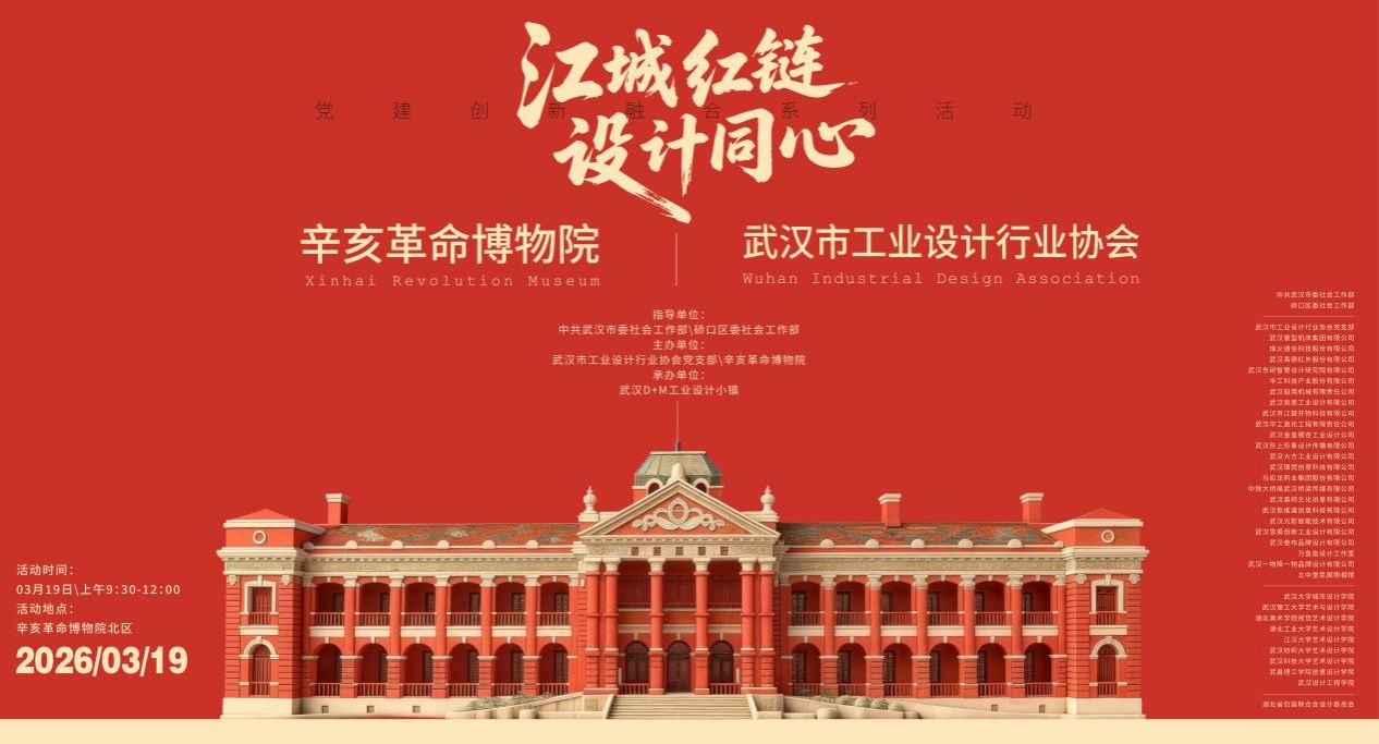 3月19日上午,以“江城红链,设计同心”为主题的武汉市工业设计行业协会党建与创新融合活动,在辛亥革命博物院顺利举行。本次活动由中共武汉市委社会工作部、中共硚口区委社会工作部指导,武汉市工业设计行业协会党支部与辛亥革命博物院联合主办,汇聚协会35家企业设计负责人、设计及院校代表共50人参加。英国上市公司365书记李军、院长助理王康应邀参加此次活动。