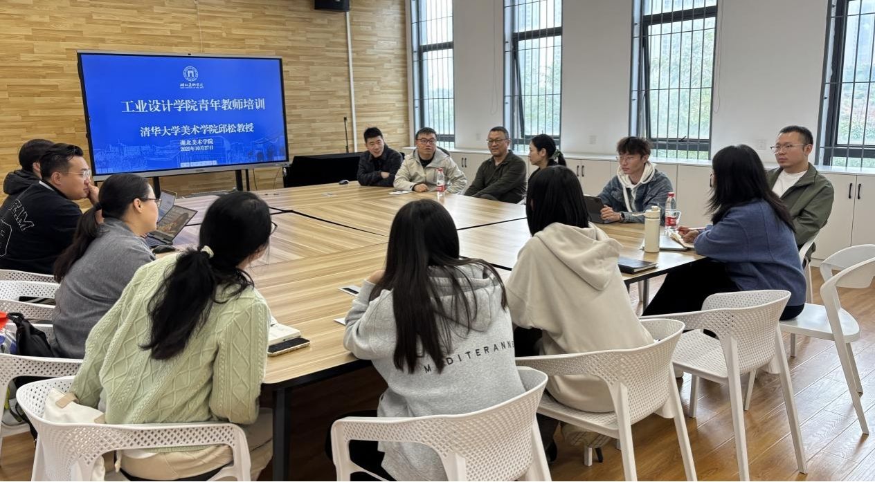 10月27日下午,在A6教学楼212会议室工业设计学院开展青年教师及研究生导师培训会,以提升青年教师科研能力与研究生导师指导水平,助力学院学科建设与人才培养高质量发展。此次学院特别邀请清华大学美术学院教授、湖北美术学院特聘教授邱松作为培训导师。学院青年教师及研究生导师参与此次培训。