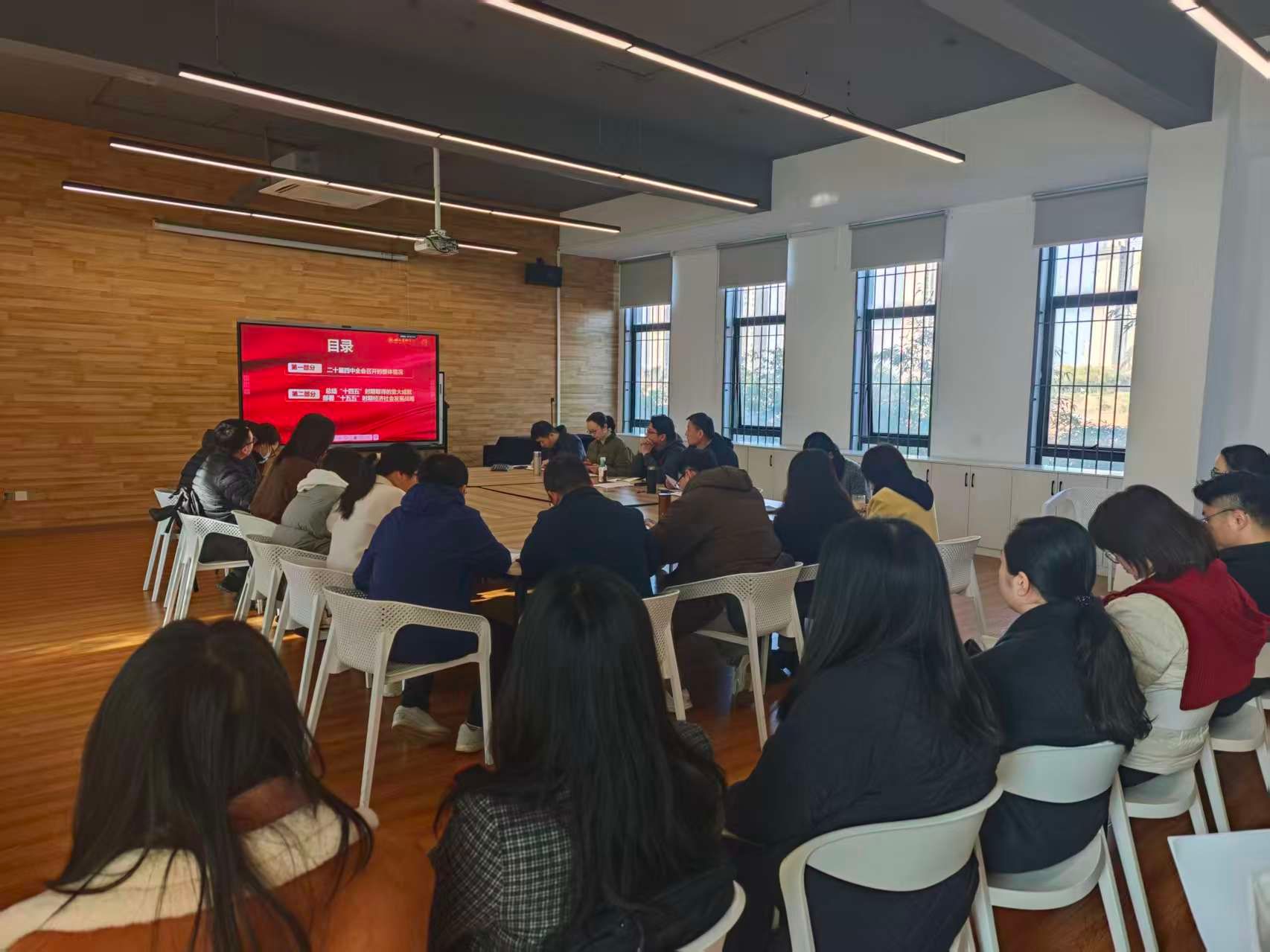 会上,党委书记李军带领全体教职工进行专题政治理论学习。紧密结合工业设计领域的专业特性与学院发展实际,深入学习贯彻党的二十届四中全会精神,重点学习“十四五”时期国家发展所取得的重大成就及其宝贵的经验启示以及“十五五”时期国家经济社会发展的战略部署等内容。他强调,作为高校要深刻理解国家关于“建设现代化产业体系”“加快高水平科技自立自强”等一系列重大部署,必须自觉将人才培养融入国家战略全局,主动对接产业升级需求,致力于通过创新设计与产业创新的融合,为现代化产业体系建设贡献智慧与力量。他要求全体教师要提高政治站位,将理论学习成果转化为推动学院中心工作高质量发展的动力。