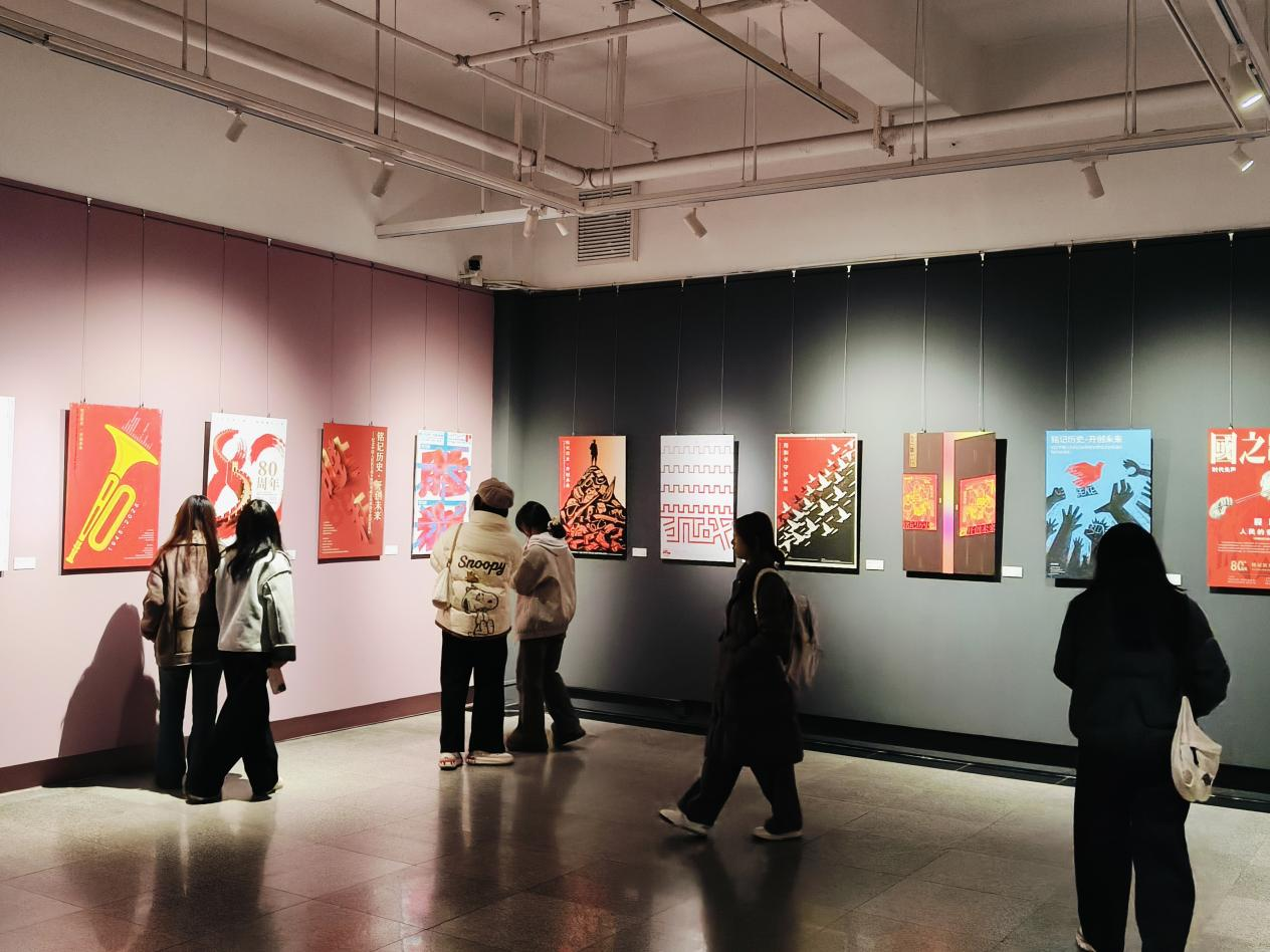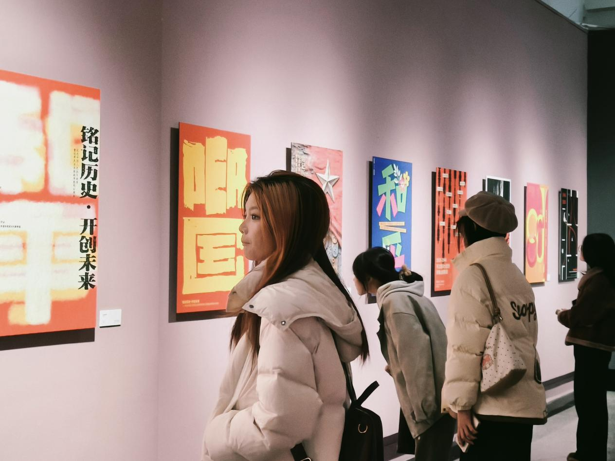 同学们反响热烈,纷纷表示这不仅是一次高质量的艺术观摩,更是一堂沉浸式的思政大课。2025级学生刘福表示,这些海报极具冲击力和感染力,作为设计专业学生,领悟到如何将重大历史主题转化为强有力的视觉叙事,对今后创作思路和责任感培养都有很大启发。2023级党员学生黄诗蕴表示,历史是最好的教科书,站在新时代回望那段峥嵘岁月,更应珍惜当下,将爱国情怀融入专业学习,用设计服务社会、传递正能量。